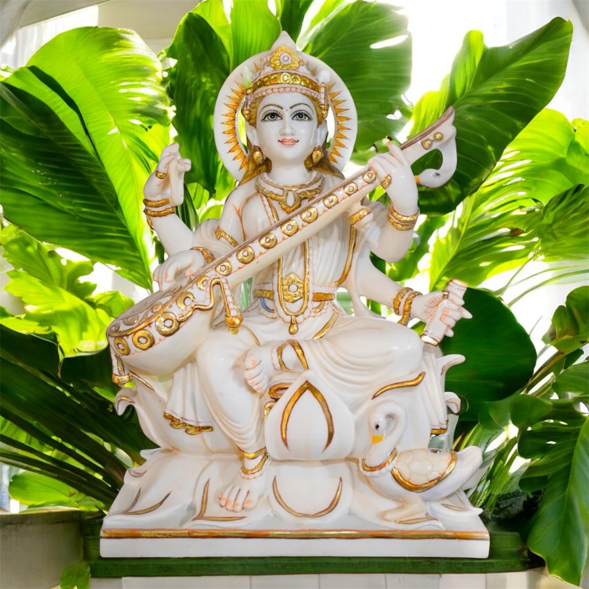 Maa Sarswati White Marble Statue