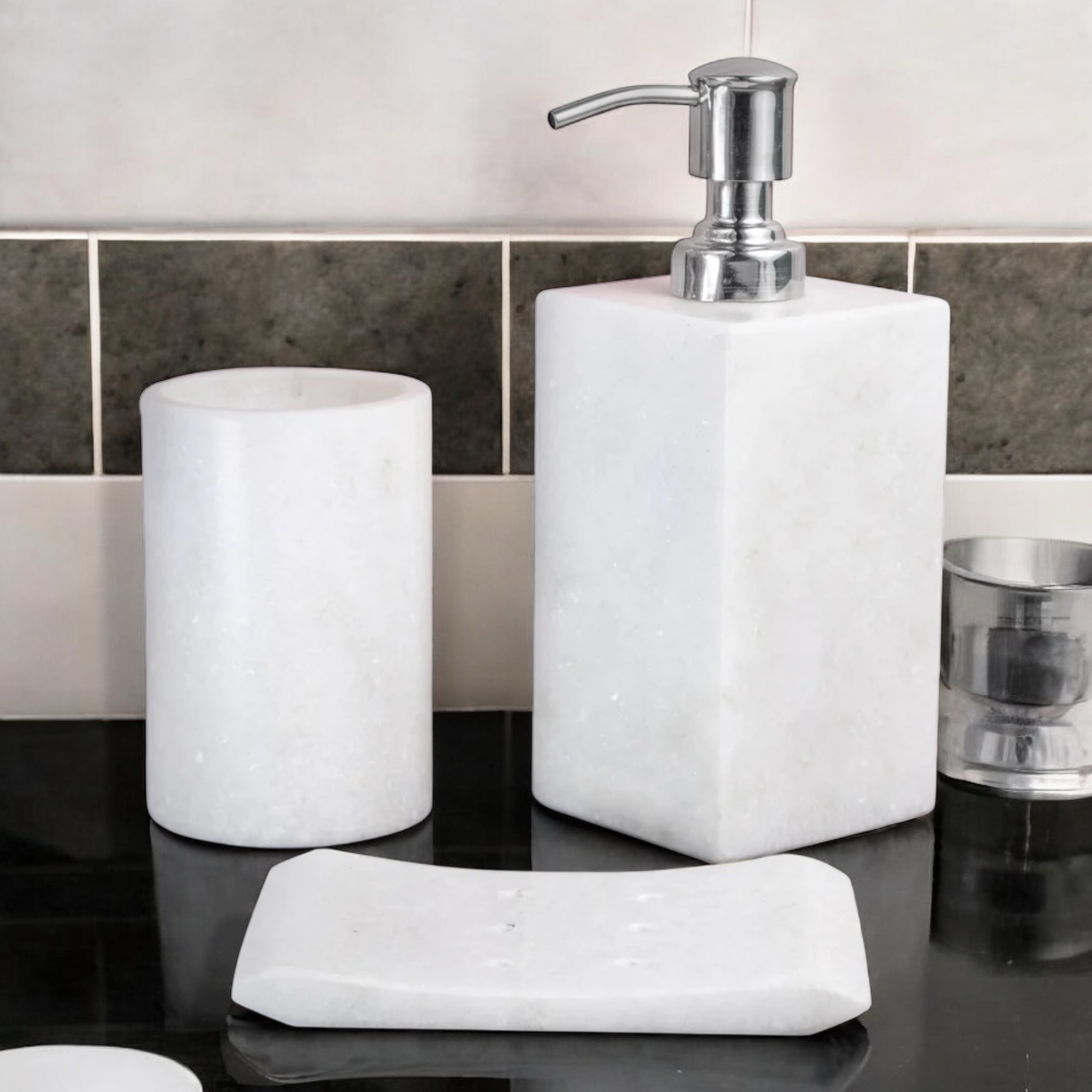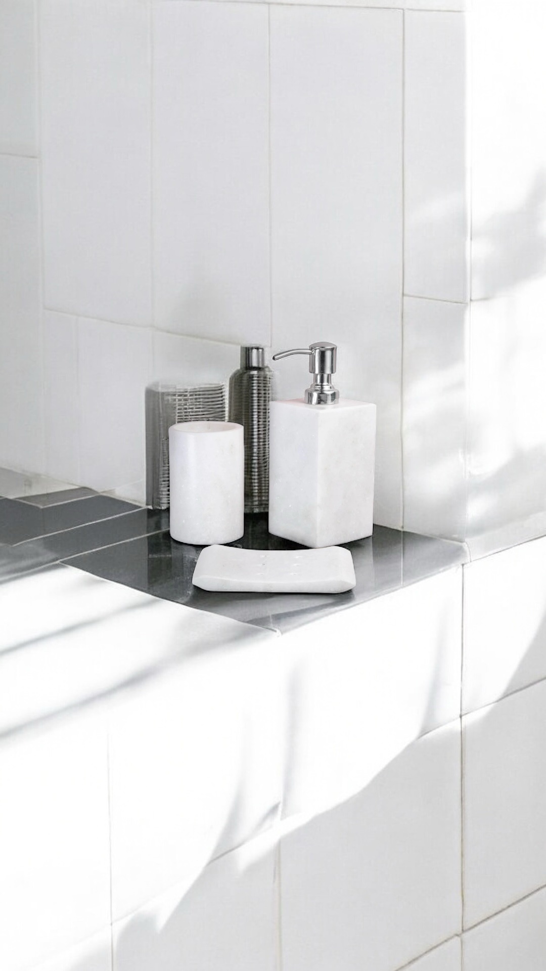 Discover the exquisite craftsmanship of our Marble Bathroom Set ( White ), crafted from premium-quality marble or stone. Designed with elegance and tradition in mind, this product brings timeless beauty and cultural significance to your home. Ideal for décor, gifting, or functional use, it enhances any space with its refined appearance. Each piece reflects skilled artistry, durability, and a unique character that makes it a standout addition to your living area or temple.